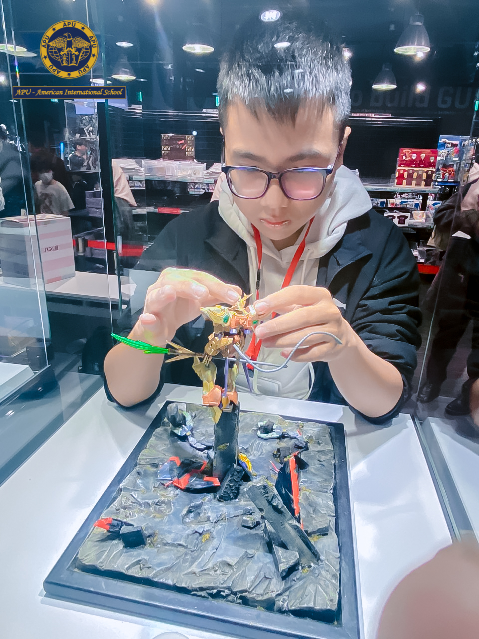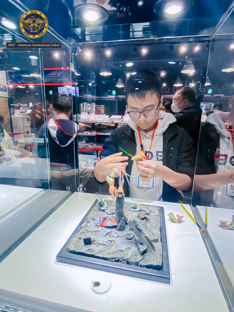 Vừa qua, Trần Duy Khánh (Tony) học sinh lớp 9 tại Trường Quốc tế Hoa Kỳ APU đã góp mặt tại giải thi đấu Gunpla Builder World Cup (GBWC) diễn ra tại Tokyo, Nhật Bản. Đại diện cho Việt Nam, Duy Khánh đã phát huy trọn vẹn kỹ năng tạo ra những mẫu Gunpla độc đáo, cũng như giao lưu với nhiều anh tài khác trên toàn thế giới.