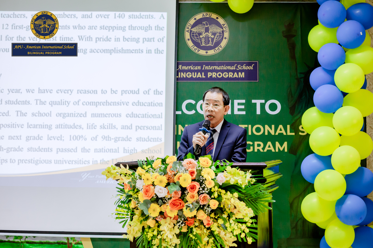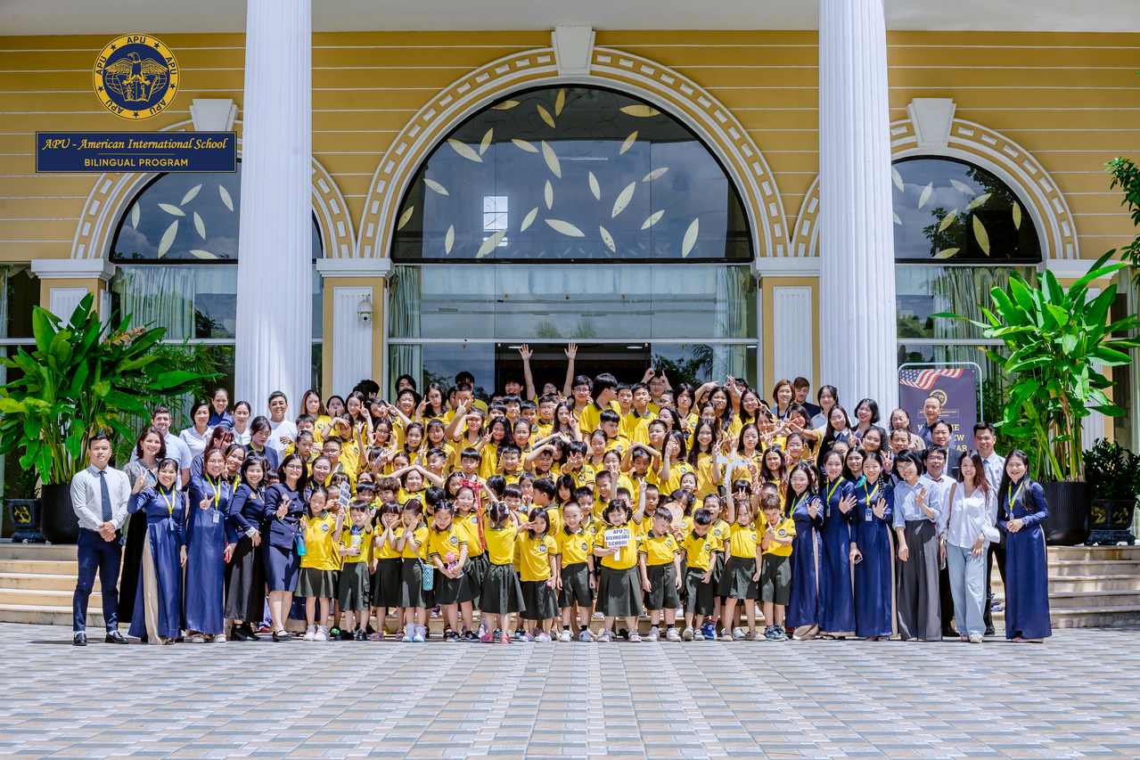 Lễ Khai giảng năm học mới 2025–2026 của Trường Quốc tế Hoa Kỳ APU – Hệ Song ngữ đã diễn ra trong không khí trang trọng và ấm áp. Buổi lễ có sự hiện diện của đông đủ quý phụ huynh, học sinh, cùng đội ngũ thầy cô giáo của nhà trường.